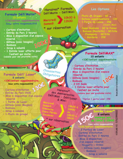 Célébrez des moments mémorables au parc Défi’Land Montluçon en réservant votre prochaine fête d’anniversaire ou événement de groupe ! Nous sommes ravis d’offrir des installations spécialement conçues pour rendre chaque célébration unique et divertissante.